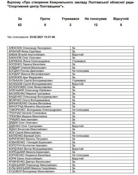 23 лютого депутати підтримали рішення. За проголосували 62 депутати.