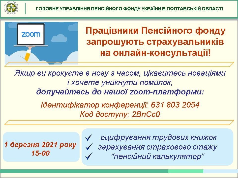 Фахівці Головного управління Пенсійного фонду України в Полтавській області першого березня запрошують роботодавців до онлайн-навчання. Вчитимуть на платформі ZOOM оцифровувати трудові книжки.