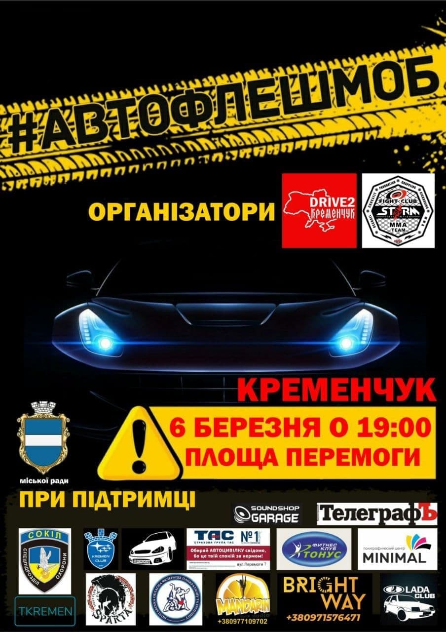 Автоспільнота Drive2Кременчук та клуб STORM fight club запрошують кременчуцьких автомобілістів взяти участь в автофлешмобі привітання жінок зі святом 8 Березня.