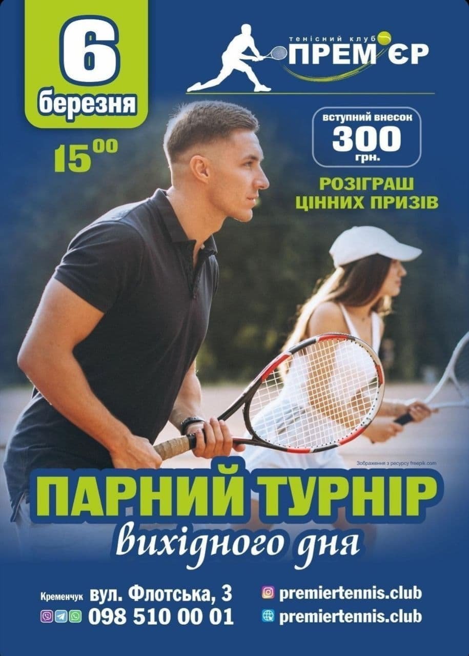 6 та 7 березня у Кременчуці відбудуться змагання з тенісу. Спортсмені зійдуться на тенісному корті Прем’єр.