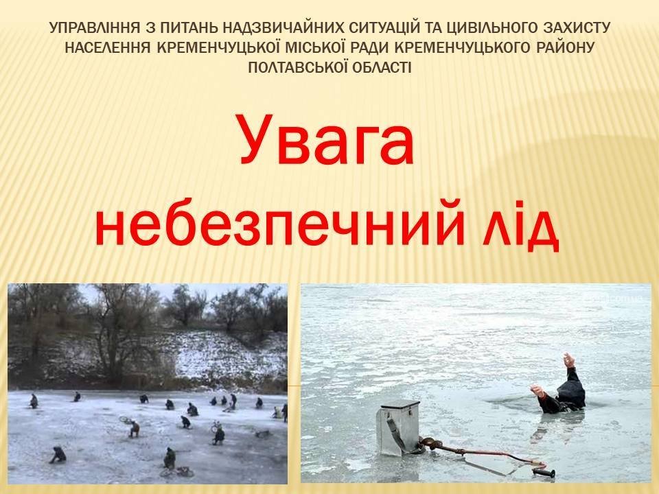 Управління з питань надзвичайних ситуацій та цивільного захисту населення Кременчуцької міської ради Кременчуцького району Полтавської області попереджає про небезпеку на тонкому льоду.