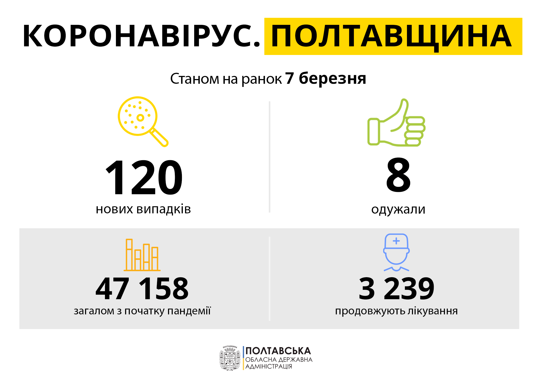 За інформацією Полтавського обласного лабораторного центру МОЗ України, від початку карантину на Полтавщині діагностували 47 158 випадків захворювання на COVID-19.