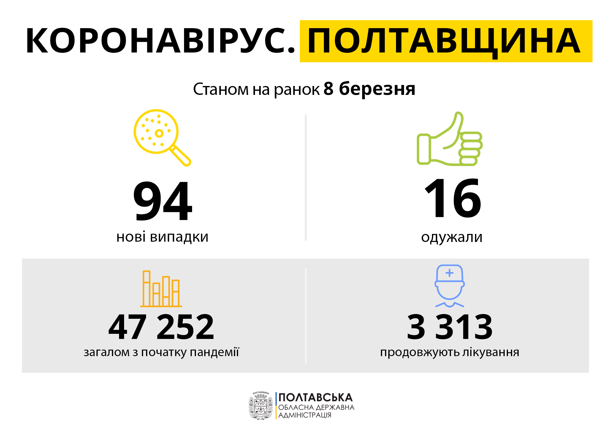 За інформацією Полтавського обласного лабораторного центру МОЗ України, від початку карантину на Полтавщині діагностували 47 252 випадки захворювання на COVID-19.