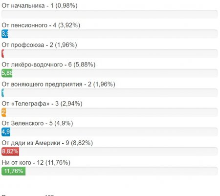 Жінки ж найбільше чекають подарунків від чоловіка (18%); 12% ні від кого нічого не чекають; по 11% хочуть подарунків від синів і коханців; а ще 9% - чекають спадку від дядька з Америки.