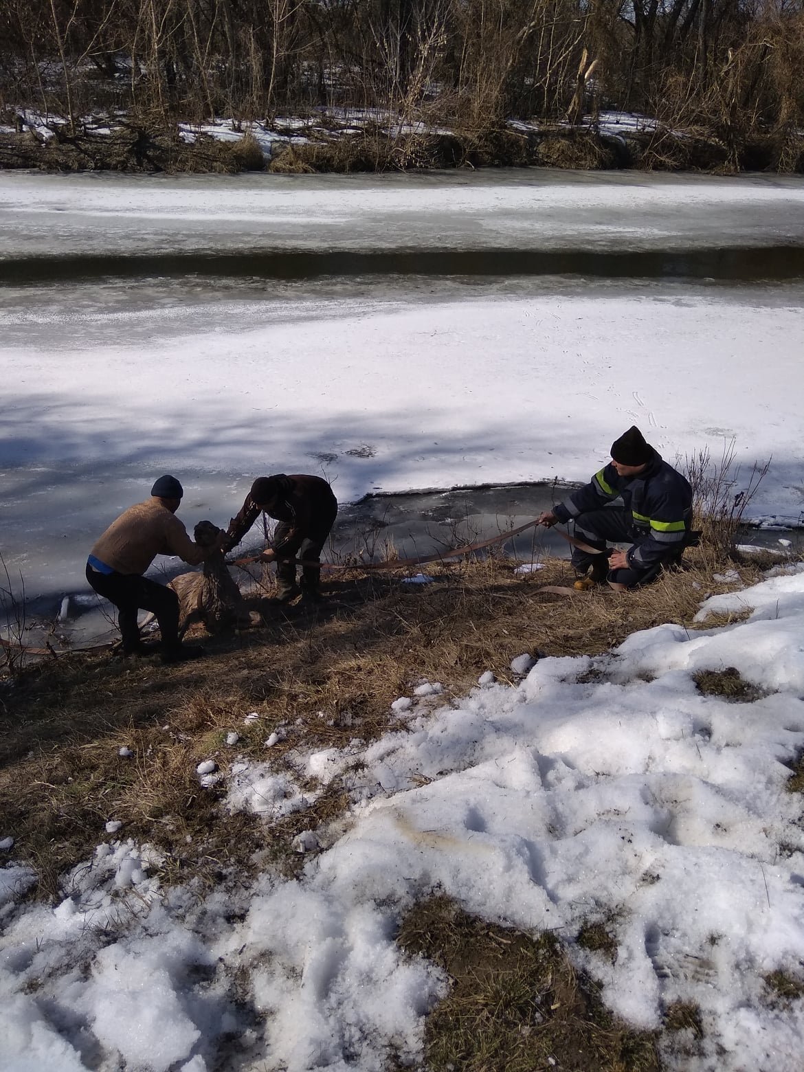 Бідолашні втікали від зграї собак та провалилися під кригу. Добре, що поруч були небайдужі люди, які кинулися на порятунок і викликали рятувальників та лісників. Тварин оглянули та обробили рани. Їх вирішили забрати лісники, але оленята, відпочивши, піднялися на ноги і вирушили подалі від людей до лісу.
