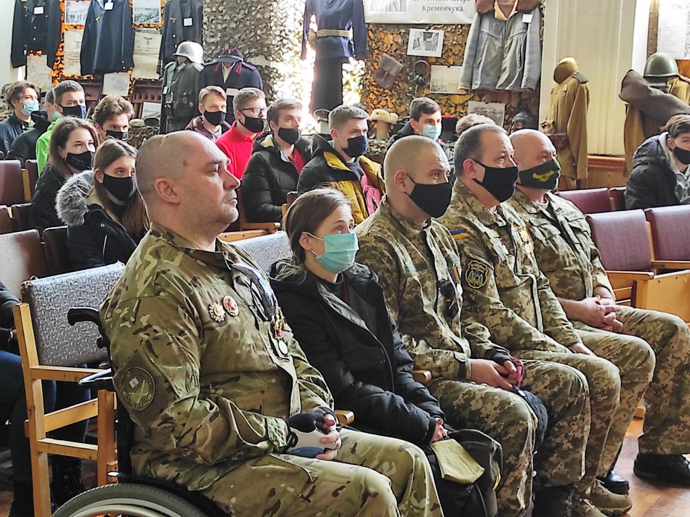 Сержанта Євгена Саленка, сержанта Григорія Павліка та солдата Василя Онищенка - трьох бійців-добровольців, учні Вищого професійного училища №7 зустрічали стоячи та з оплесками. Учням розповіли про неймовірні подвиги та історії кременчужан. Також Володимир Поляков показав викладачам та студентам 3Д модель черепа після поранення - Євгена Саленка.