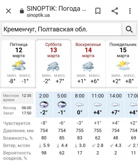 Проте Gismeteo стверджує, що вдень вона підніметься до +9?С. Сніг розстане досить швидко, і кременчужанам знову доведеться вдягати ризові чоботи.