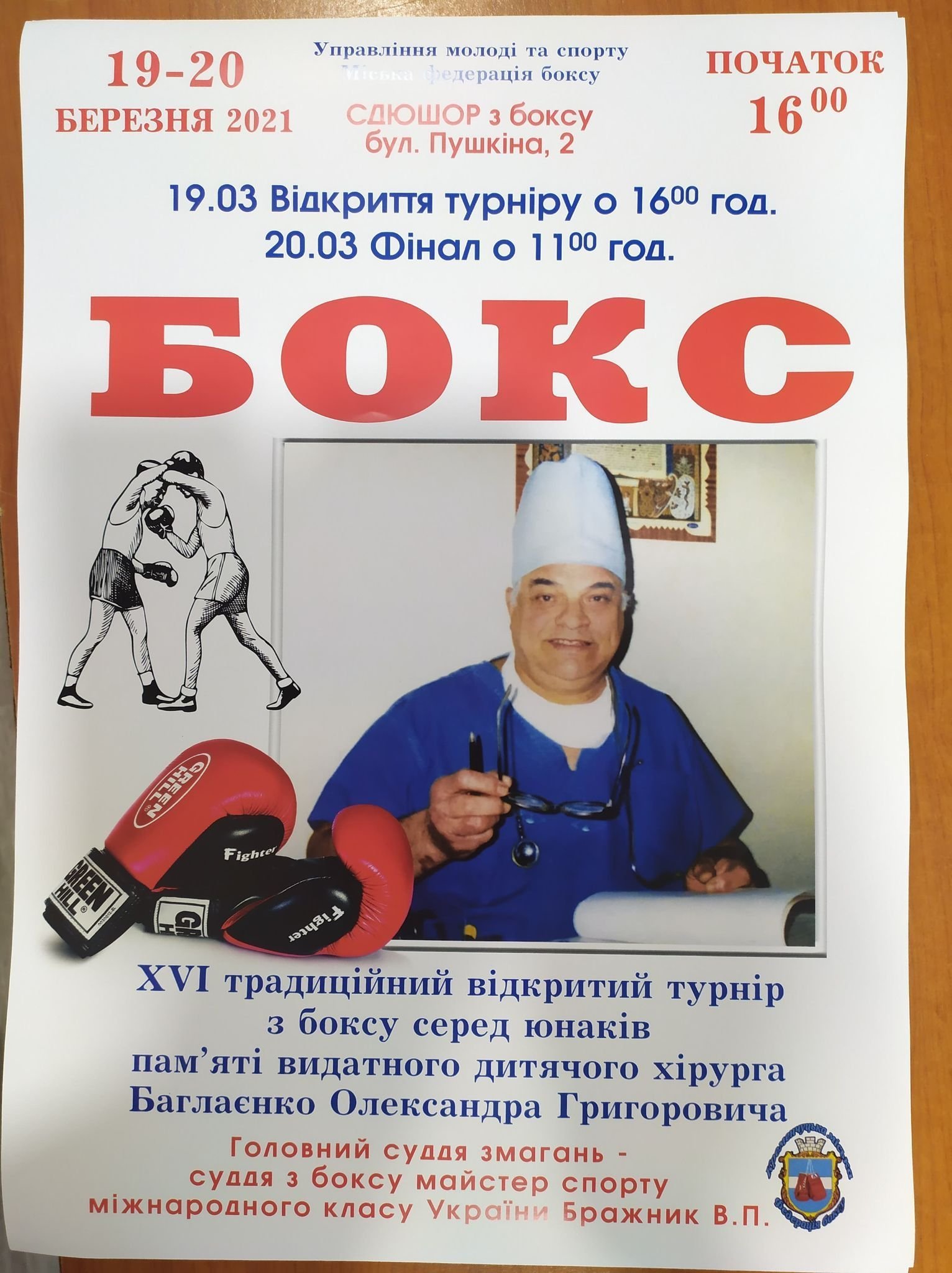 Протягом двох днів, 19 та 20 березня, у Кременчуці відбудеться традиційний відкритий турнір з боксу пам’яті видатного кременчуцького дитячого хірурга Олександра Баглаєнка.