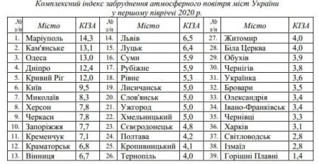 Серед 39 міст, в яких проводилися дослідження, у 10 спостерігається високий рівень забрудненості (за комплексним індексом забрудненості атмосфери) – і Кременчук входить у цю групу. Найвищий рівень забрудненості у Маріуполі (14,3), а найчистіше повітря у Горішніх Плавнях (1,4).