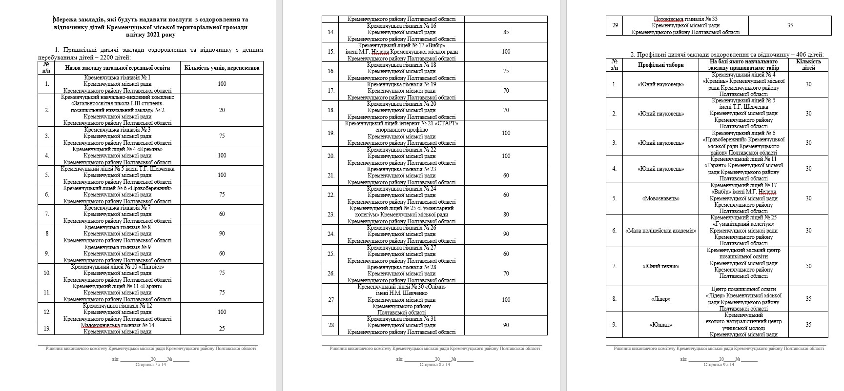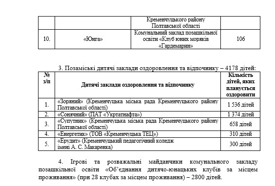 Кременчуцька міська рада оприлюднила проект рішення стосовно літнього дитячого відпочинку. Для організації дозвілля юних кременчужан цього року по максимуму використають можливості навчально-виховних та позаміських дитячих закладів.