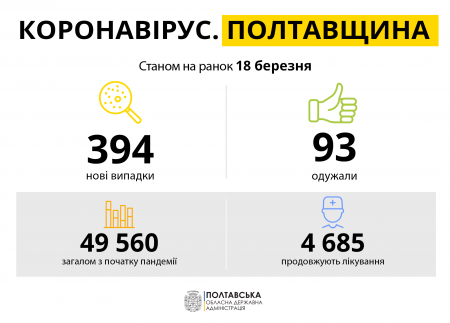 Кількість хворих зросла і в області: зареєстровано 394 нових випадків, одужало 93 людини. Шестеро пацієнтів, нажаль, померло.