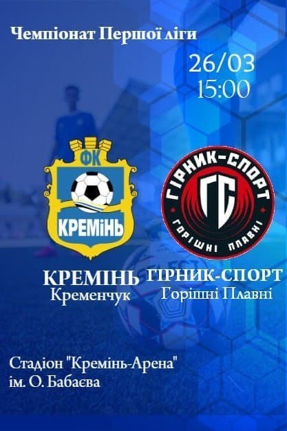 Завтра, 26 березня, футбольний клуб «Кремінь» зустрінеться на своєму полі з «Гірник-Спортом» із Горішніх Плавнів.