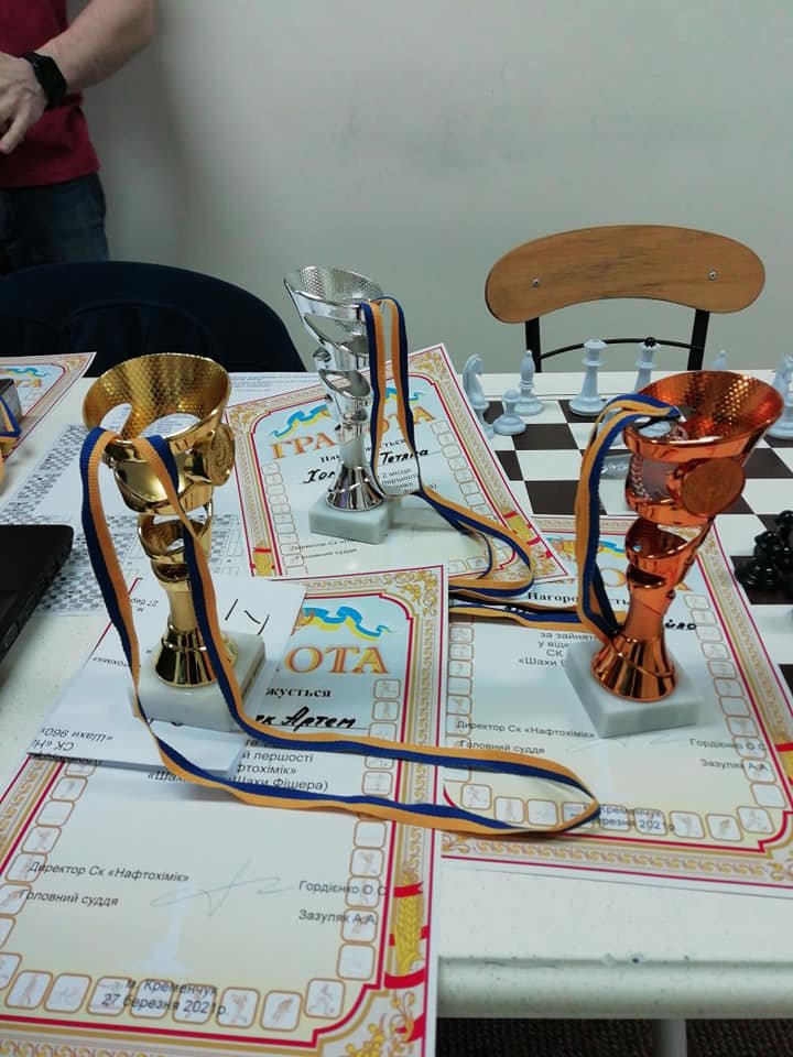 - Спершу на старт вийшли початківці, на здобуття перших своїх нагород, а саме головне здобути 1-й юнацький (4 розряд). Після першого ігрового дня лідерство захопив з результатом 4 з 4 Нікіта Веселовський самий старший учасник змагання. А в цей же день, після обіду в турнірному залі вже змагались досвідчені шахісти в Відкритій Першості СК Нафтохімік з шахів 960 (шахи Фішера), як на мене цей різновид шахів який запропонував Боббі Фішер є досить цікавим, в якому потрібно думати з першого ходу і не прив'язуватись до знайомих (завчених) дебютів, як і прогнозувалось перші 4 місця розділили 1 розряди, - зазначив тренер.