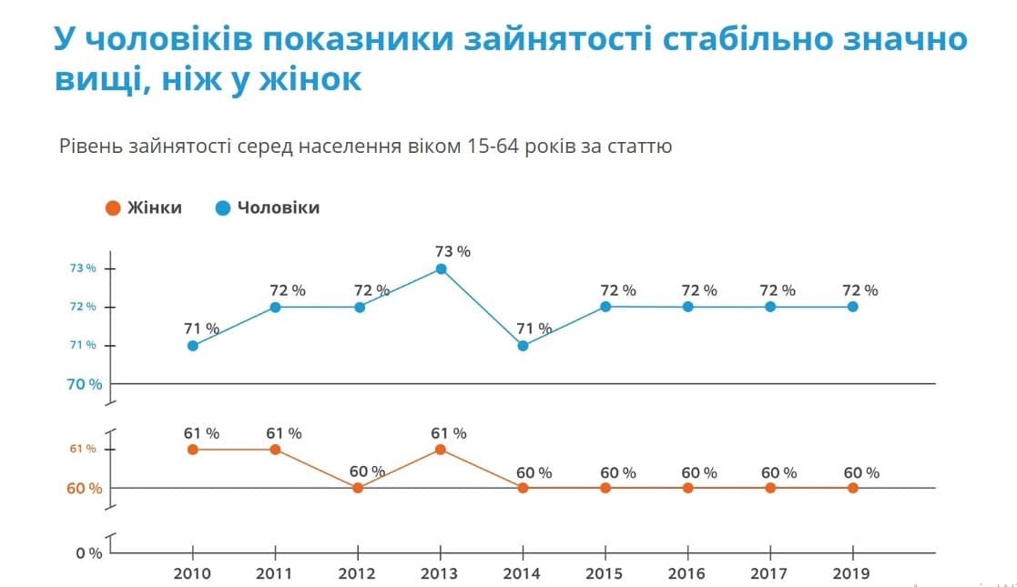 Останнім часом питання гендерної рівності у сфері трудових відносин є особливо актуальним для українців, про нього багато говорять – але цифри показують, що серед жінок рівень зайнятості є нижчим, ніж серед чоловіків, при тому, що здебільшого жінки мають кращу освіту. Про таке свідчить інформація, надана Міжнародною організацією праці.