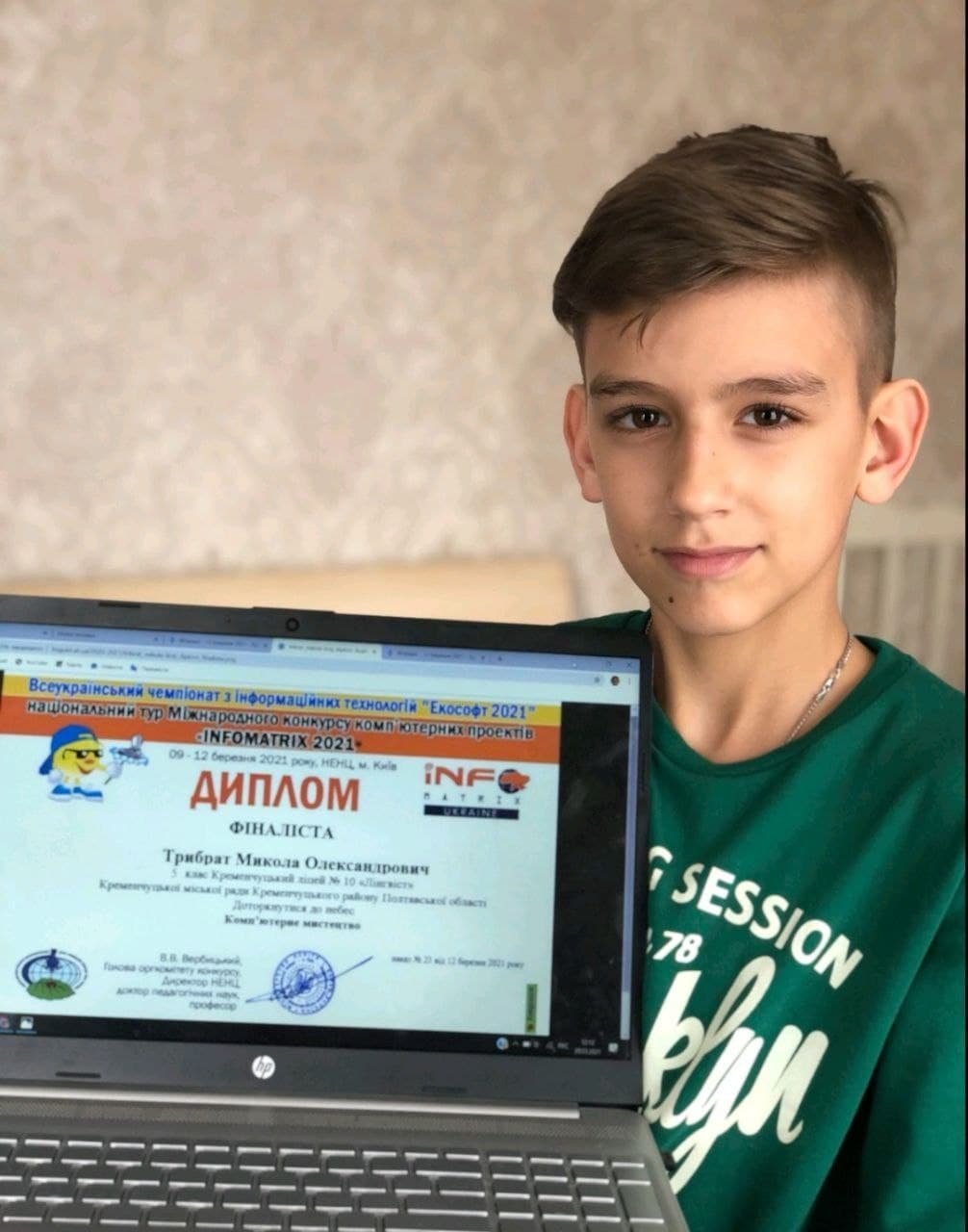 Місто Кременчук був представлений учнями Кременчуцького ліцею №10 «Лінгвіст» Кременчуцької міської ради Кременчуцького району Полтавської області, яким керує директор Мамон Наталія Володимирівна: Дипломи ІІІ ступеня за командну роботу здобули Пічка Демід (5Б) і Пічка Ігор (7А) зі своєю ігровою програмою «Долаємо гірські вершини». Також Вакуленко Анастасія (9А) зі своєю навчальною програмою для дошкільників і учнів 1 класів «Вчимося рахувати», посіла ІІІ призове місце 3 (диплом ІІІ ступеня). Учениця 9А класу Бубнова Карина (Диплом ІІІ ступеня) представила плакат «Бережімо природу!» у категорії «Комп’ютерне мистецтво». У цій же категорії вийшов до фіналу учень 5Б класу Трибрат Микола з макетом «Дотягнутися до небес». Учні працювали під керівництвом вчителя інформатики Чайдак Людмили Вікторівни.