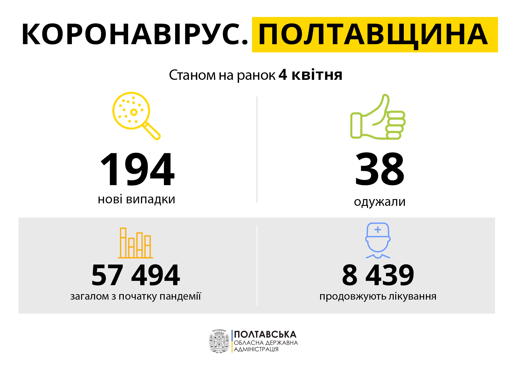 За інформацією Полтавського обласного лабораторного центру МОЗ України, від початку карантину на Полтавщині діагностували 57494 випадки захворювання на COVID-19.