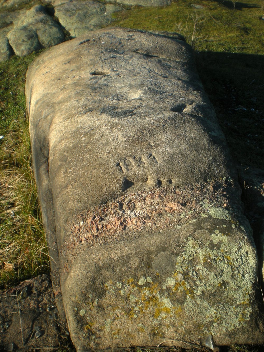 Позначка найвищого рівня води під час повені на природних виходах гранітів у Крюкові в районі 7 школи