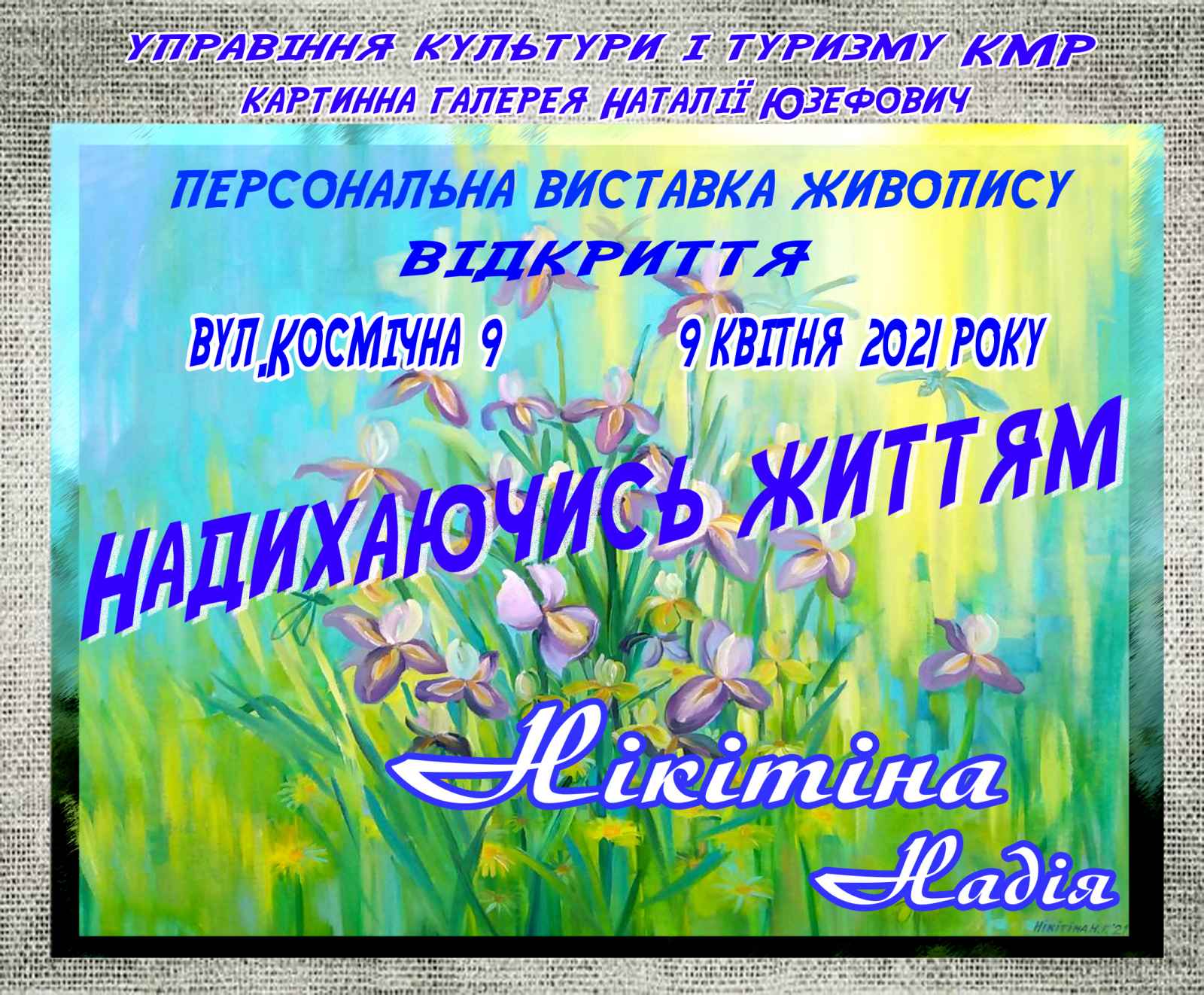 9 квітня в картинній галереї Наталії Юзефович стартує персональна виставка живопису «Надихаючись життям» кременчуцької художниці Надії Нікітіної (Шаціло)*. Це вже друга персональна виставка пані Надії, що проходить у галереї Юзефович.