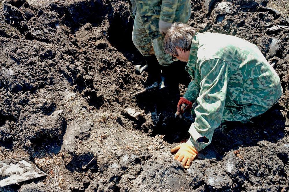 За словами пошуковців, один з загиблих офіцер або політпрацівник. Про це свідчили залишки нашивки на рукаві. У другому розкопі роботи проводилися краще. Бруд лип до лопати, і практично, після кожного «копа» його доводилося вручну зчищати з лопати.