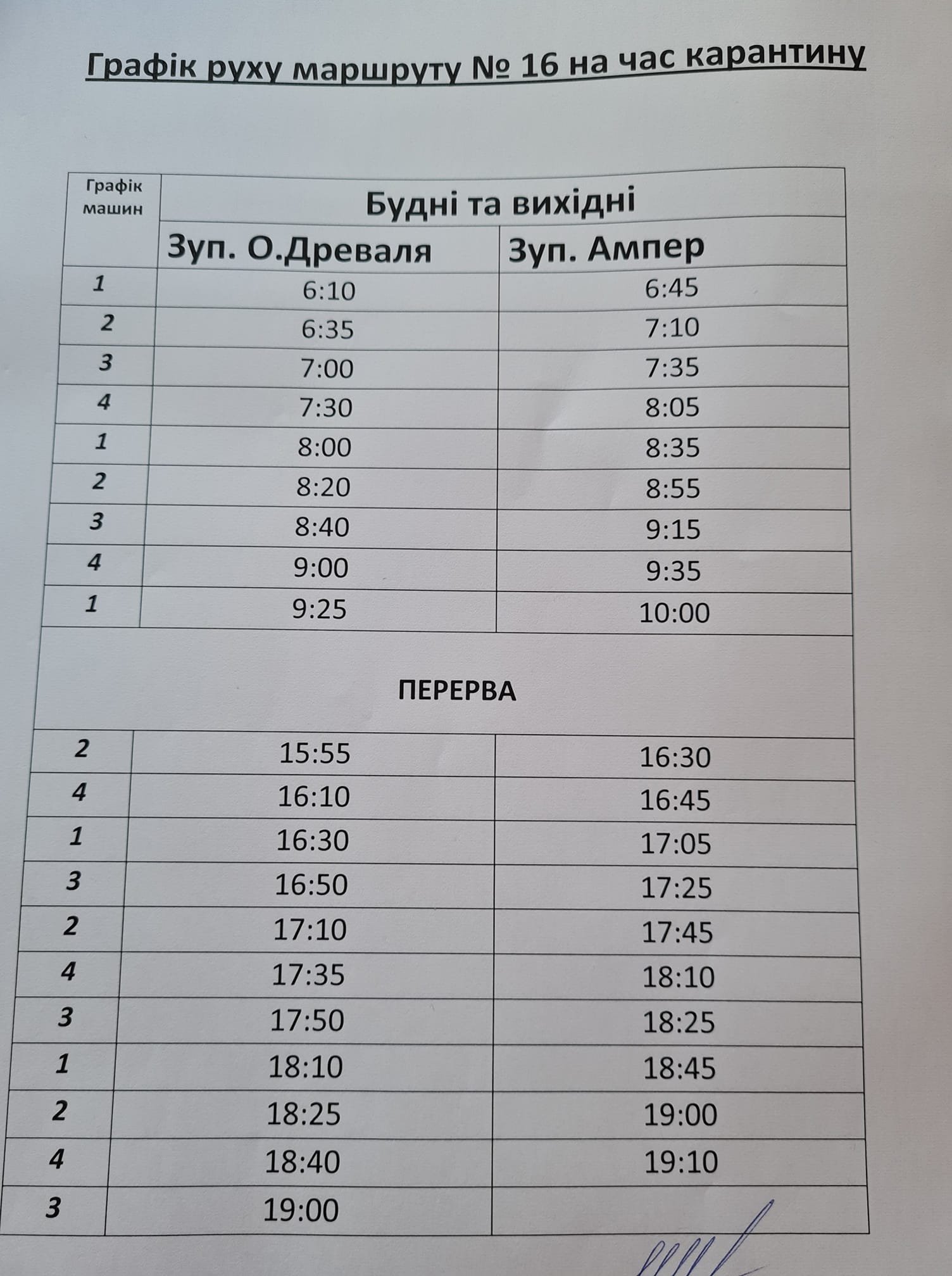 Натомість перевізник на маршруті №16 обмежив свій режим так, як передбачає припис регіональної комісії ТЕБ та НС на час карантину у червоній зоні, розмістивши оголошення на зупинках. Кременчужани поділилися ним на сторінці «Транспорт Кременчуга» у фейсбуці.