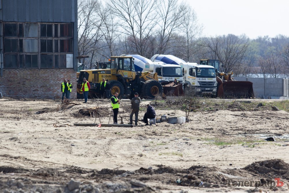 Це територія річкового порту, частина якої згодом відійде під будівництво. Працює техніка з логотипом компанії «Догуш».