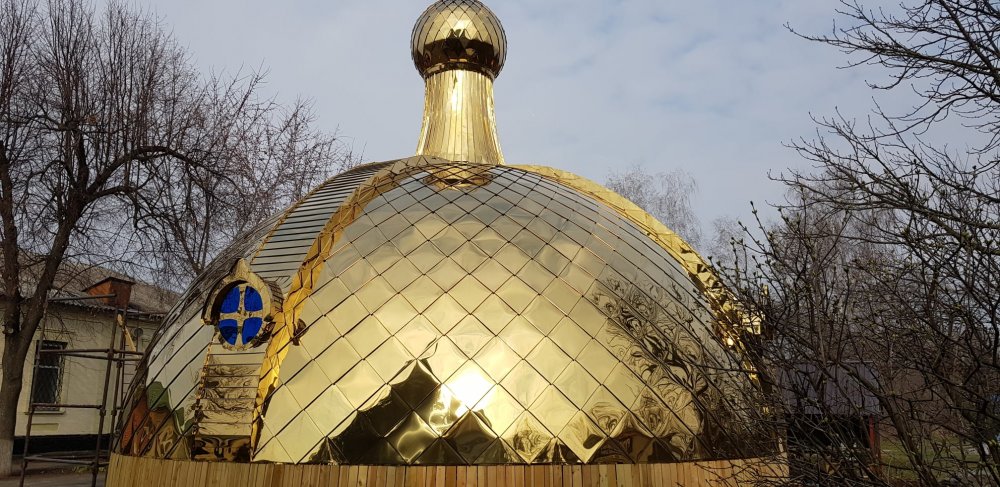 Священник Свято-Успенського кафедрального собору (Московського патріархату) Вячеслав Давиденко опублікував фото як створювався купол для храму. Спочатку на залізний каркас розмістили дерев'яну чашу, яку після зими оздоблювали.