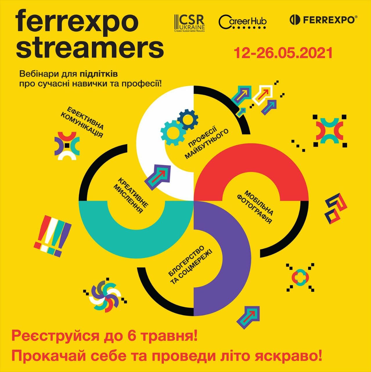 У програмі заходів спілкування з крутими експертами та експертками, практичні вправи для прокачування навичок, а також яскраві призи для найактивніших учасників та учасниць!