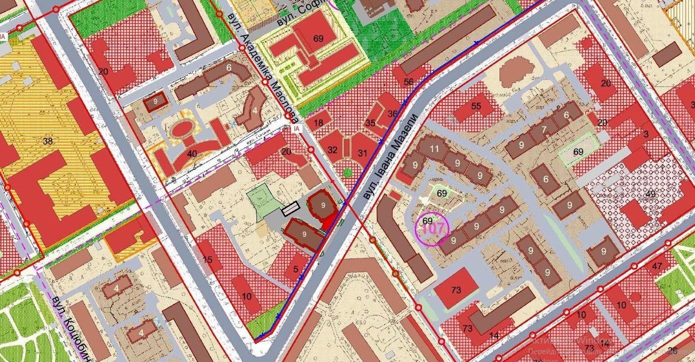 Ділянки на перехресті вулиць Академіка Маслова та Івана Мазепи і на вул. Софіївській