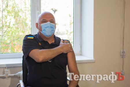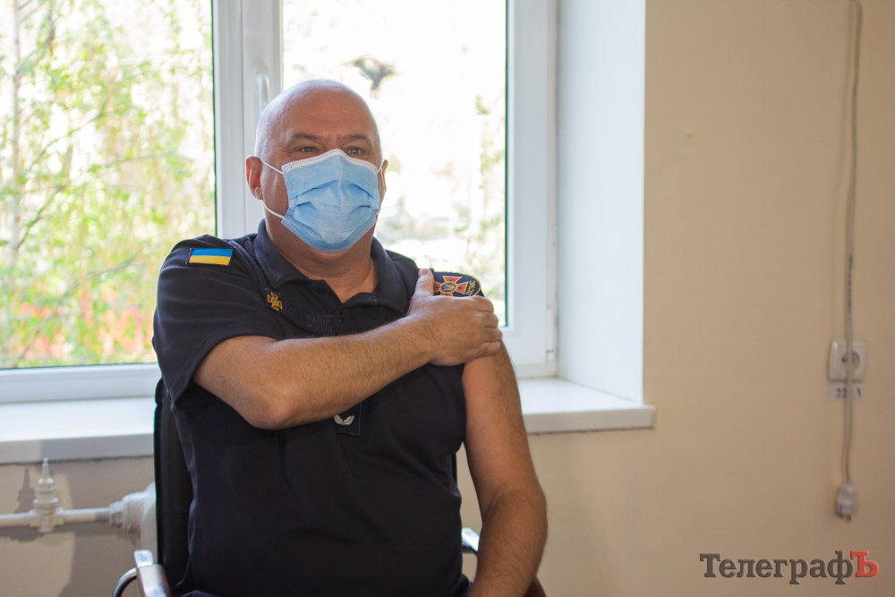 Першим сьогодні щеплення зробив начальник Кременчуцького міськрайонного управління ГУ ДСНС України в Полтавській області Сергій Геращенко.