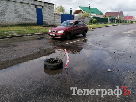 На вулиці Чкалова сьогодні з’явилися нові «дорожні знаки» - ось вони тут, на фото. З’явилися вони після того, як глибоченькі ями, надійно сховані в калюжах, вловили в районі перехресть з пров. Токарним та Вишневим кілька авто. Як кажуть очевидці, один з водіїв пошкодив одразу два колеса та викликав копів.