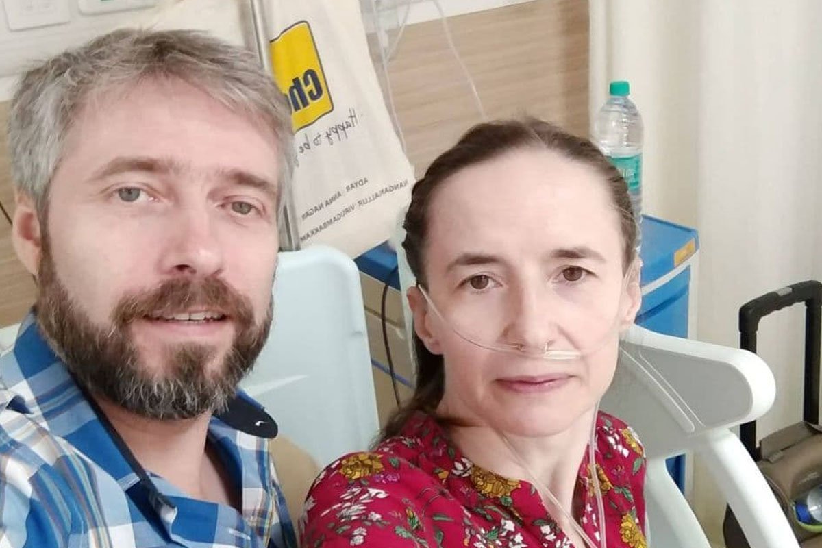 Подружжя з Кременчука Оксана Славунік та її чоловік Сергій опинилися у світовому епіцентрі пандемії COVID-19 – Індії. Жінка уже два роки чекає там на пересадку легень. Як через нехлюйське ставлення чиновників на батьківщині доводиться виживати в ураженій сотнями тисяч смертей Індії, повідомляє журналіст з Кременчука Дмитро Малишко у виданні Апостроф.