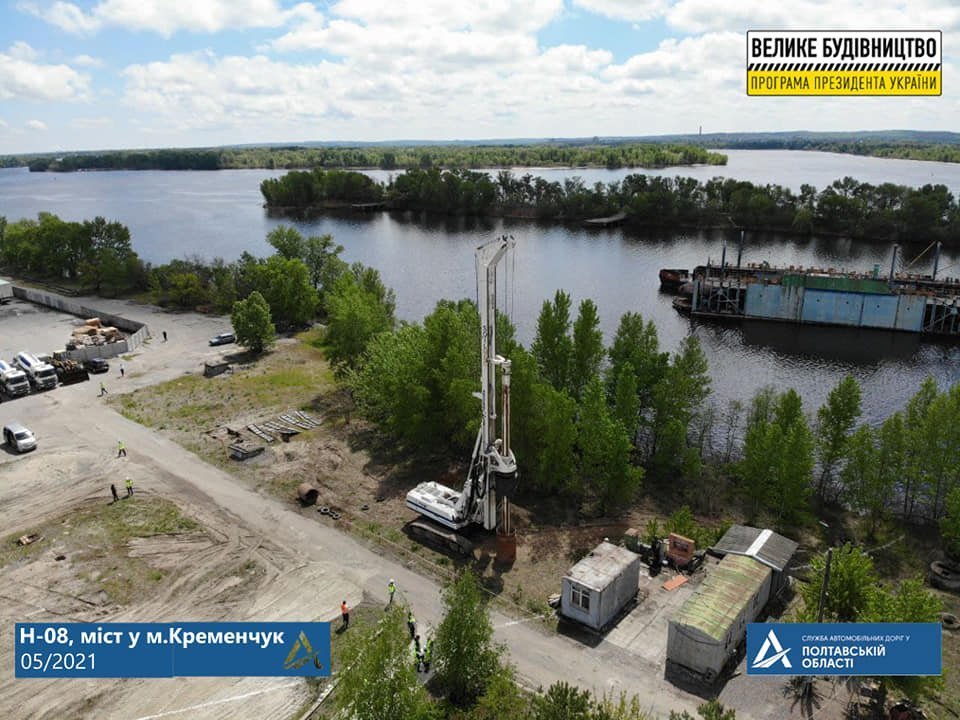 У Кременчуці на лівому березі річки Дніпро розпочали влаштування 5-ти випробувальних буронабивних паль. За інформацією Служби автомобільних доріг у Полтавській області, таким чином випробовують несучу здатність палі, щоб в майбутньому опори мосту витримали проєктне навантаження. Глибина, на яку влаштовується паля, – 30 метрів.