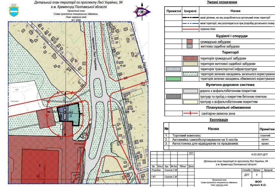 На ділянці площею 3121 м? передбачається розташування операторної, технічного приміщення та санвузла. Тут буде п’ять постів самообслуговування для мийки автотранспорту, а кількість персоналу становитиме 2 особи. Також планом передбачається автостоянка очікування.