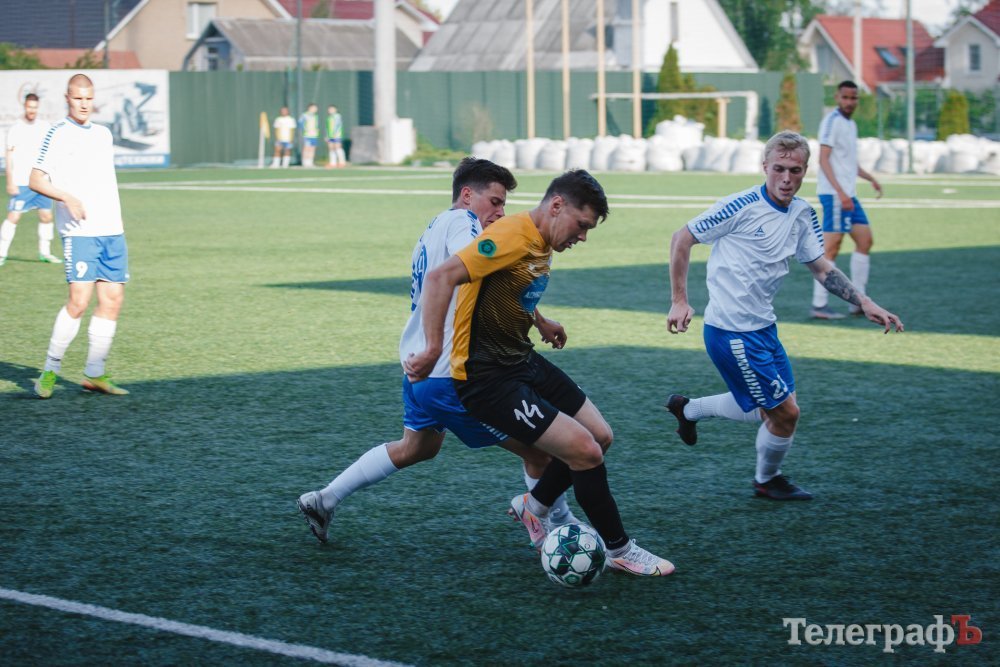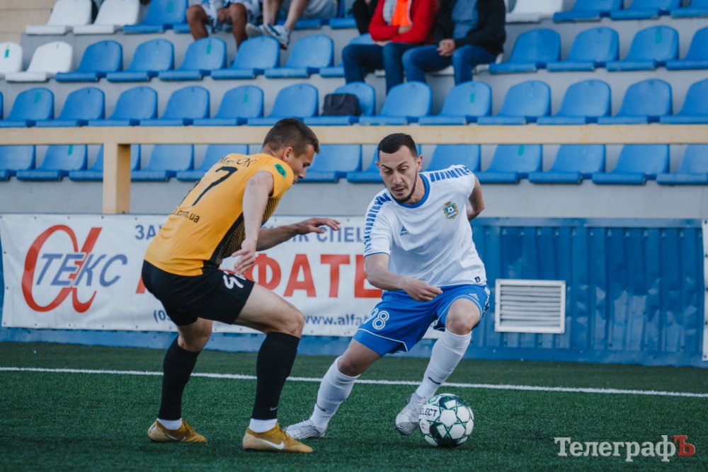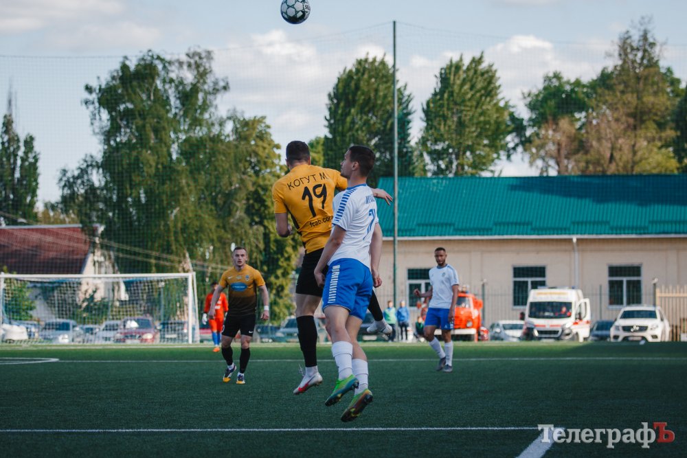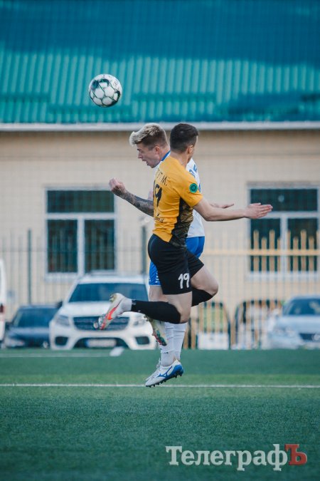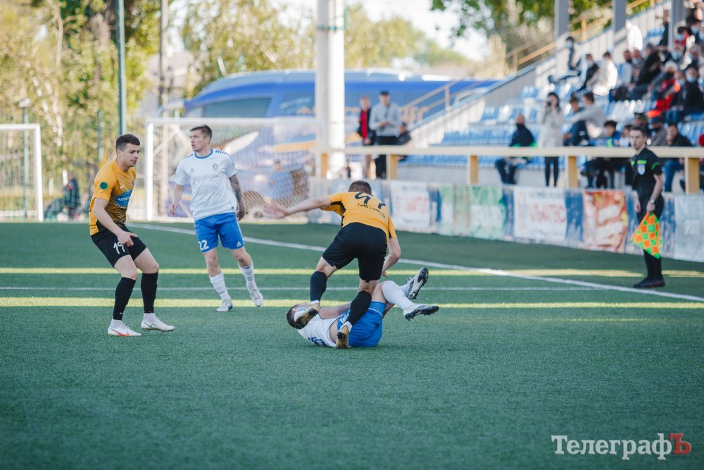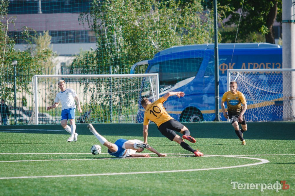 У першому таймі на 29 хвилині затяжна атака «Агробізнеса» завершилася сильним ударом Черненка. Він майже з лінії штрафної прострелив у ближній кут – 0:1. До перерви гості продовжили атакувати, проте надійний захист та злагоджені дії «Кременя» дали вистояти проти команди, яка бореться за підвищення у Прем’єр-лігу.