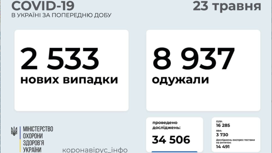 В Україні, за інформацією МОЗ, діагностували коронавірус у 2533 громадян, зокрема, захворіли 153 дитини та 31 працівник медичної галузі.