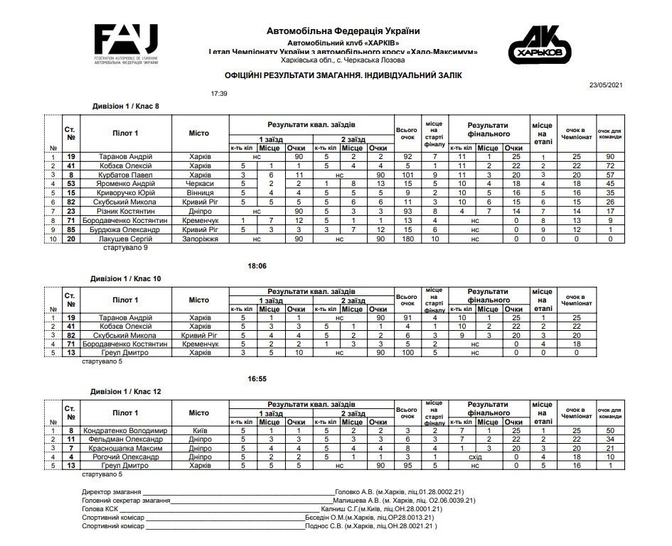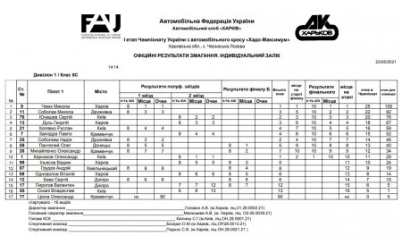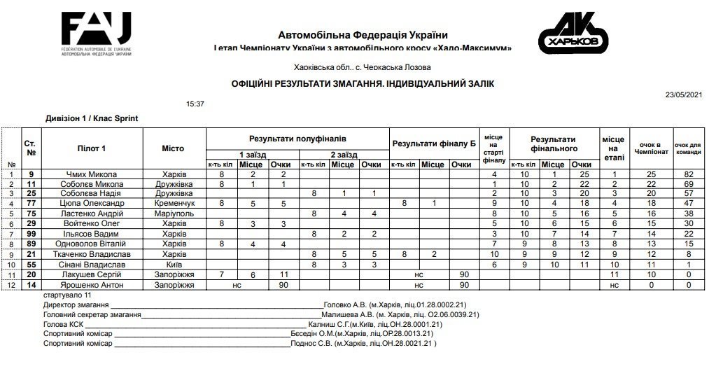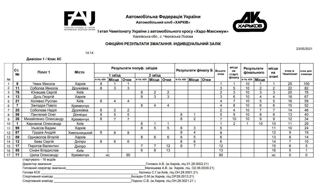 Результати першого етапу чемпіонату України з автомобільного кросу «ХАДО-Максимум» приведені в офіційних таблицях.