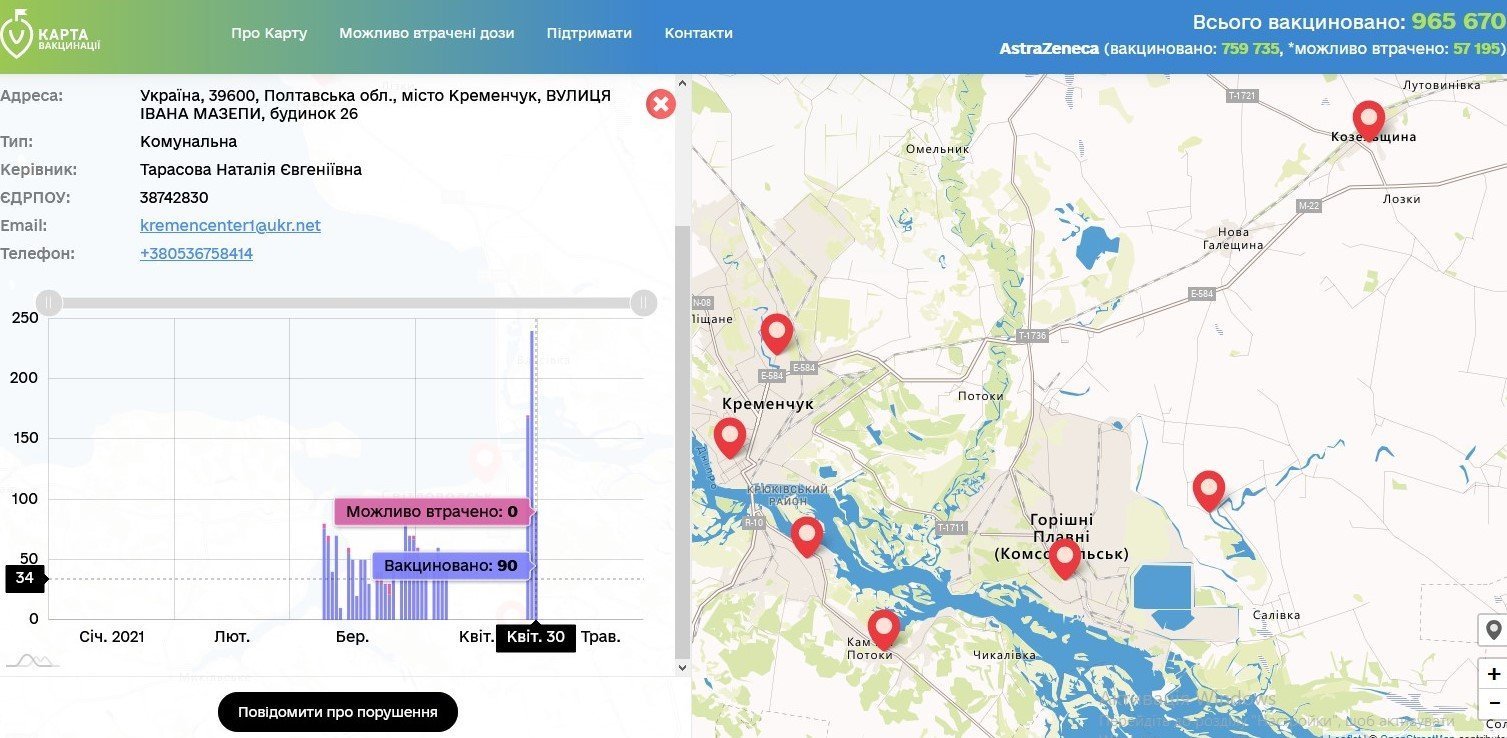 Громадська організація «Антикорупційний штаб» повідомила про запуск інтерактивної карти вакцинації від COVID-19.