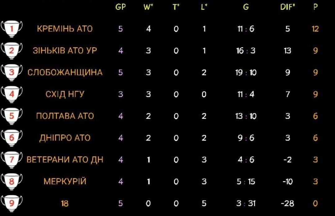 Після 5 турів кременчуцька команда посідає першу сходинку в турнірній таблиці. «Дихає у спину» нашим хлопцям команда «Зіньків АТО», яка зіграла на одну гру менше.