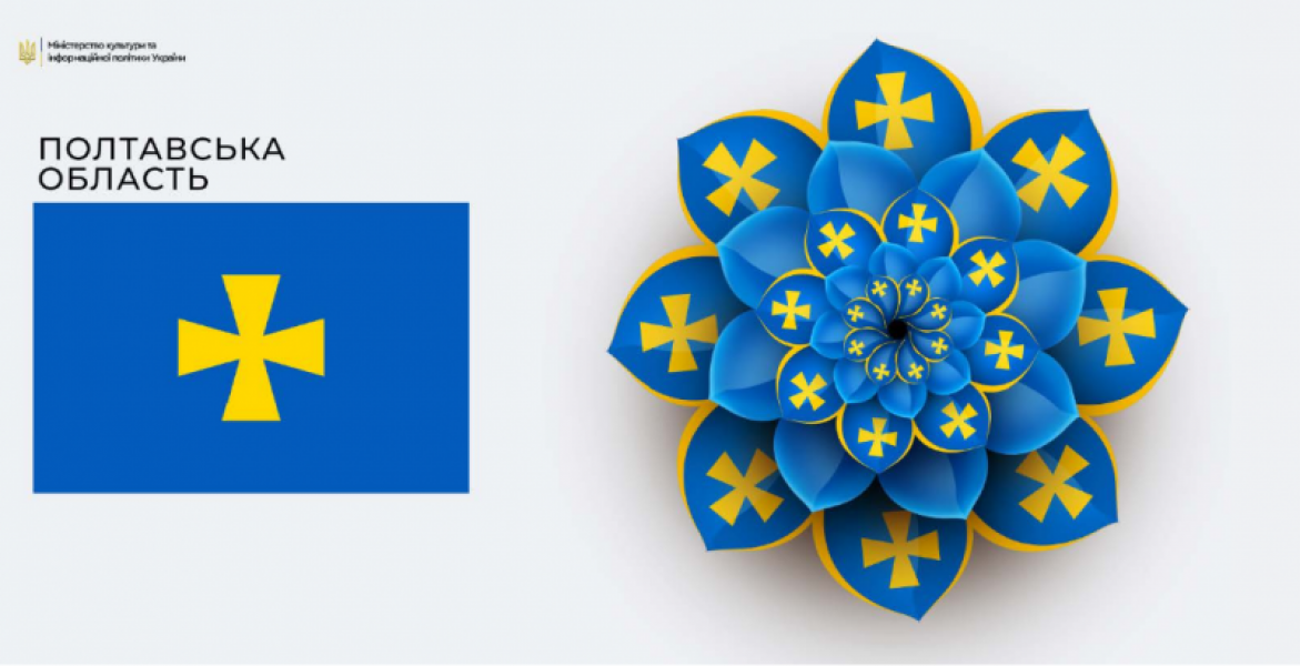 Для Полтавської області в основі центрального образу – квітки – покладений прапор регіону. Квітка динамічно змінює свої пелюстки.