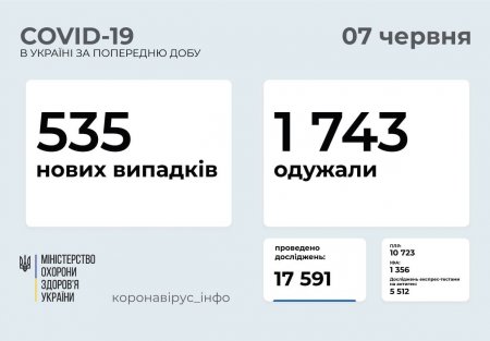 В Україні 535 людей захворіли на COVID-19, з них 30 – діти, а 61 – працівники медичної галузі. До шпиталів потрапив 601 пацієнт. На жаль, померло 33 людини.