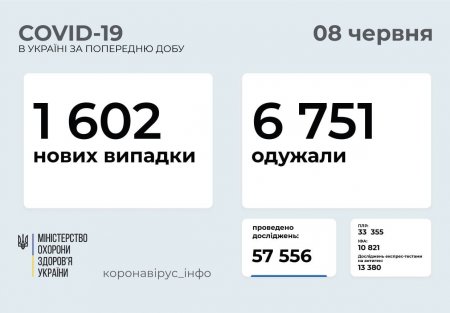 МОЗ інформує, що протягом останньої доби в Україні на COVID-19 захворіли 1602 особи, з них 95 – діти, а 94 – медпрацівники.