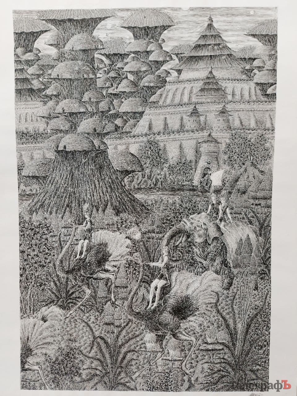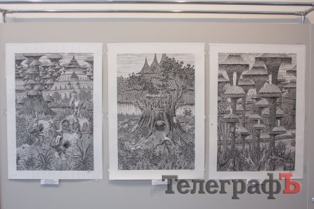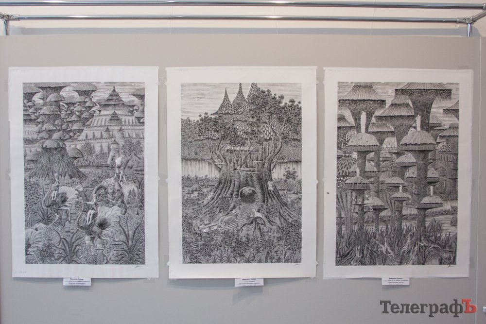 Одразу, як заходиш у велику залу, у поле зору потрапляють твори Миколи Зайця, бо вони виконані з увагою до найдрібніших деталей, що не може не вразити. Після своєї персональної виставки цей художник-фантаст, який любить казки, подарував галереї цілу добірку власних робіт – аж 18 полотен. Я впевнена, вам, як і мені, захочеться затриматися біля них і роздивитися кожну частинку картини, аби віднайти найменші її компоненти.