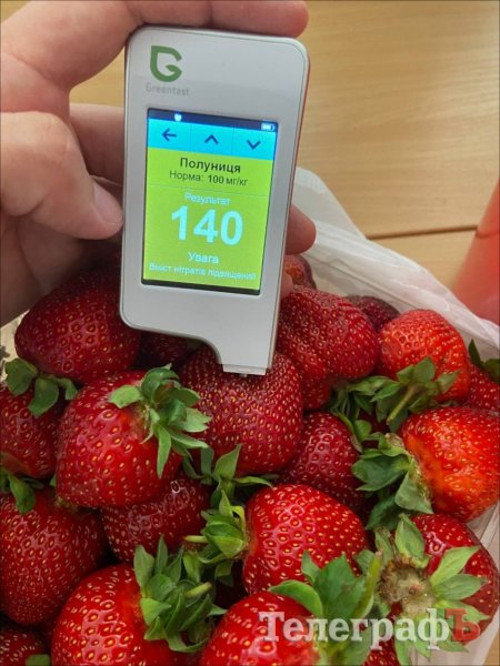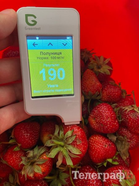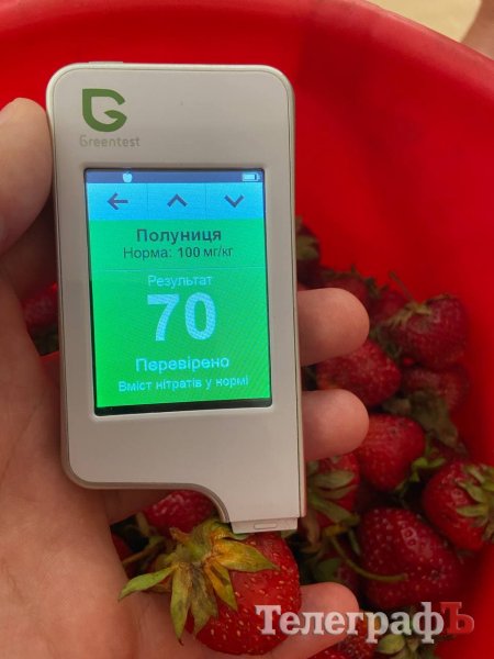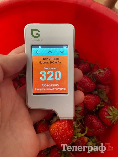 Ми взяли по три ягоди з кожної «контрольної групи» і прилад для вимірювання вісту нітратів Greentest. Нормальний показник становить 100 мг/кг одиниць.