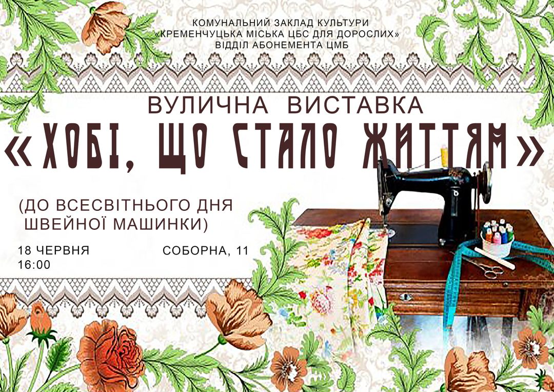 Тож запрошуємо о 16.00 на вуличну виставку «Хобі, що стало життям» на якій ви познайомитеся з книгами з крою та шиття, викройками цікавих модних фасонів одягу, матеріалами про діяльність та життя відомих дизайнерів. Зустрінетеся з майстринями, які розкриють для вас нюанси та секрети шиття як для новачків, так і для тих, хто вже не перший день освоює це мистецтво. На нашій виставці знайдеться й ряд прикладів готових робіт, порад, рекомендацій та інших приємних сюрпризів.
