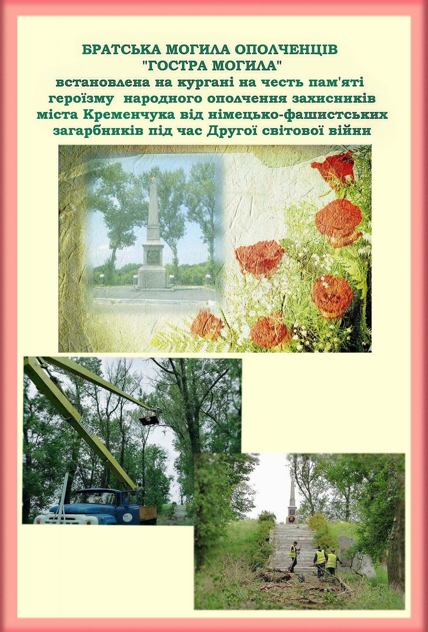 – Протягом 10 днів у кінці липня 1941 року з робітників, службовців і учнів була сформована Кременчуцька дивізія народного ополчення (більше 3000 осіб). У бій першими вступили бійці Крюківського полку Кременчуцької дивізії народного ополчення. Одержавши відсіч, німці розгорнули мінометні та артилерійські батареї та почали обстрілювати Кременчук. Дивізія ополченців розгорнулась до бою в окопах на південному схилі Деївської гори… Зайняття німцями Дніпровських переправ було зірвано. Бійці і командири Кременчуцької дивізії народного ополчення з честю виконали свій обов’язок перед Батьківщиною…- йдеться у повідомленні.