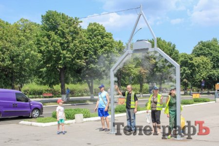 У центрі Кременчука комунальники встановили рамку для охолодження. За інформацією пресслужби мерії Кременчука, у спекотну погоду вона дає дрібне розпорошування води. Проходячи крізь неї, в умовах високих температур зовнішнього повітря кременчужани зможуть освіжитися. Слідів від води на їх одязі не залишатиметься.