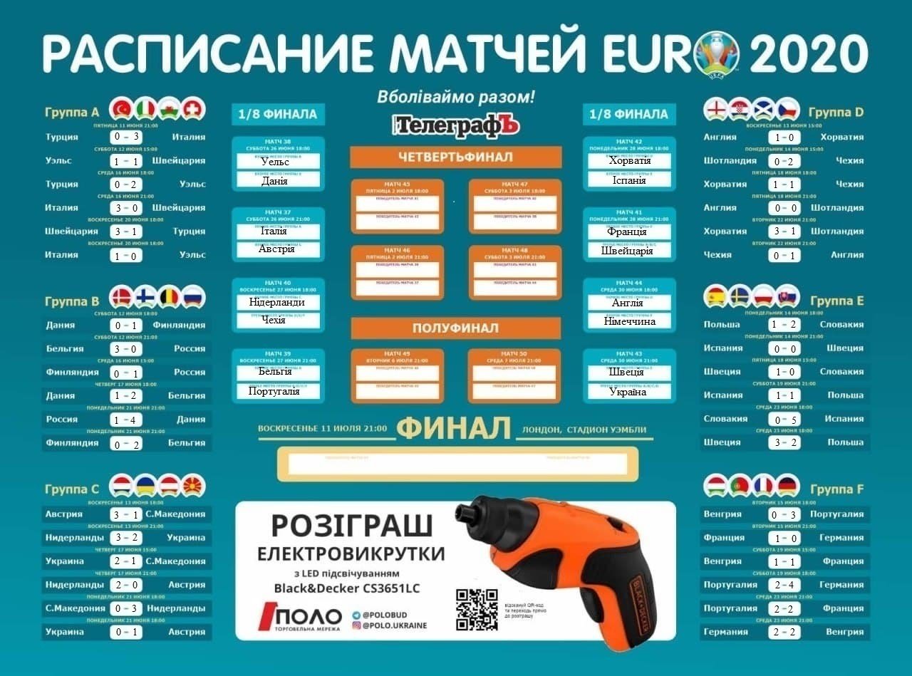 Фінал — 11 липня (неділя) на 22:00 у Лондоні.
