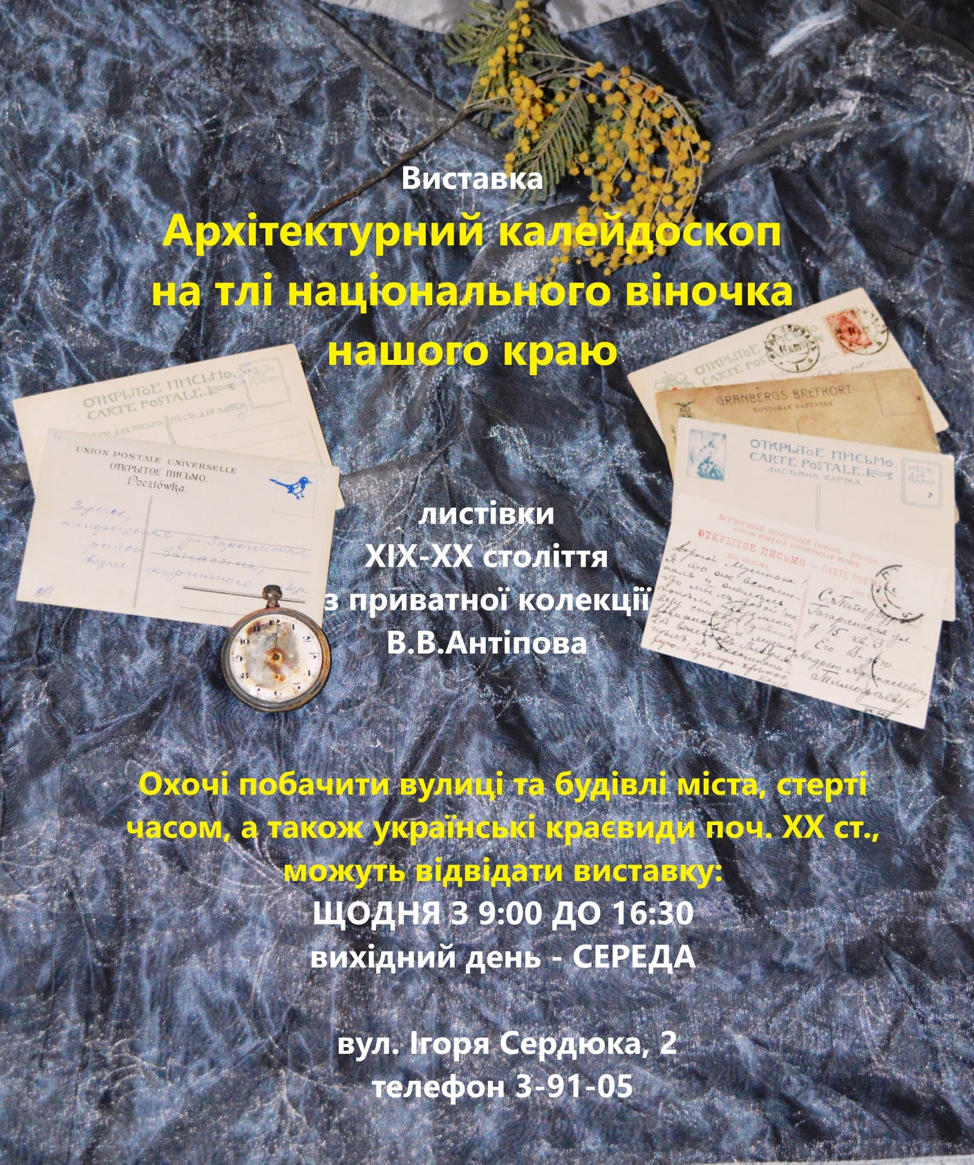 Зараз вперше експонується частина зібрання видових листівок з колекції Віктора Антіпова, подарованої музею цьогоріч на Міжнародний День музеїв.