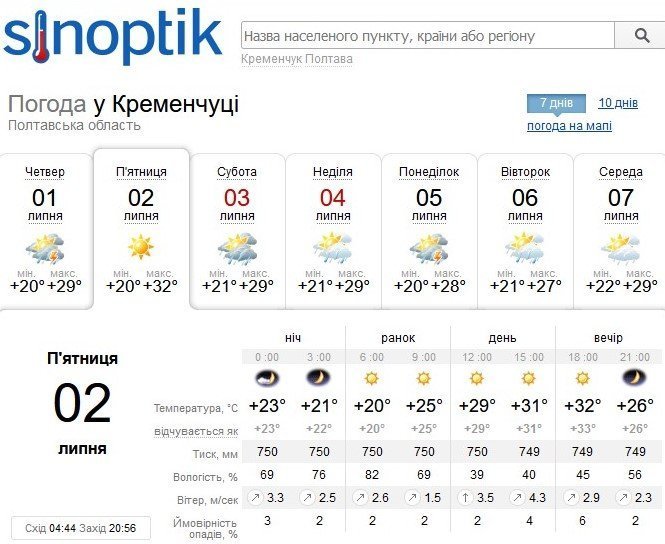 В Кременчуці, за даними сайту sinoptik.ua, очікується тепла сонячна погода, температура повітря підніметься до 32°С. Грози прийдуть до нас лише наступного дня.