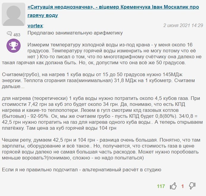 Найвлучнішим коментатором місяця став vortex – за це він отримав віртуальний кубок, який тепер буде відображатись у всіх його коментарях. Коментатори мають знати своїх героїв. Запрошуємо його до редакції – крім віртуального кубка обіцяємо нагородити ще й реальною пляшкою ігристого. За червень він написав 20 коментарів, і зібрав ними 420 лайків. Ось найбільш оцінений коментар: